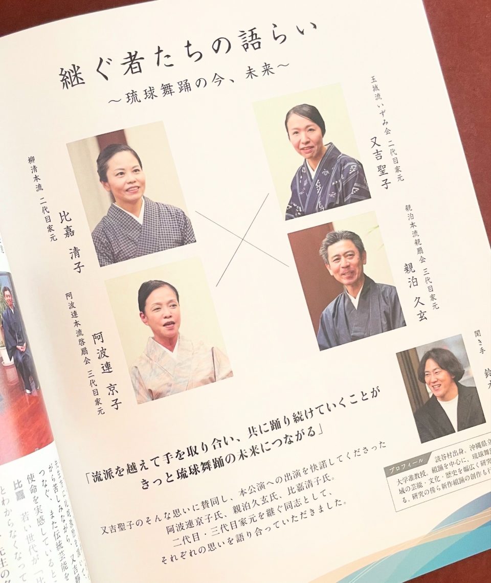 当日観客の皆様に配布されたパンフレット内の座談会記事「継ぐ者たちの語らい~琉球舞踊の今、未来~」の構成・文を担当しました。